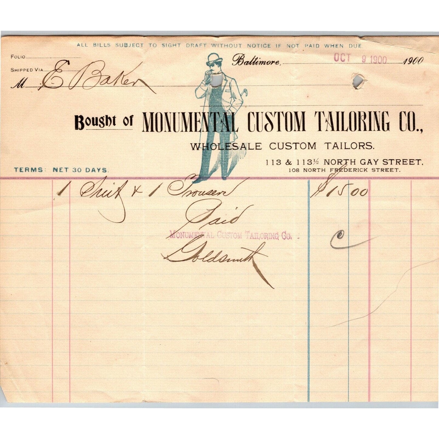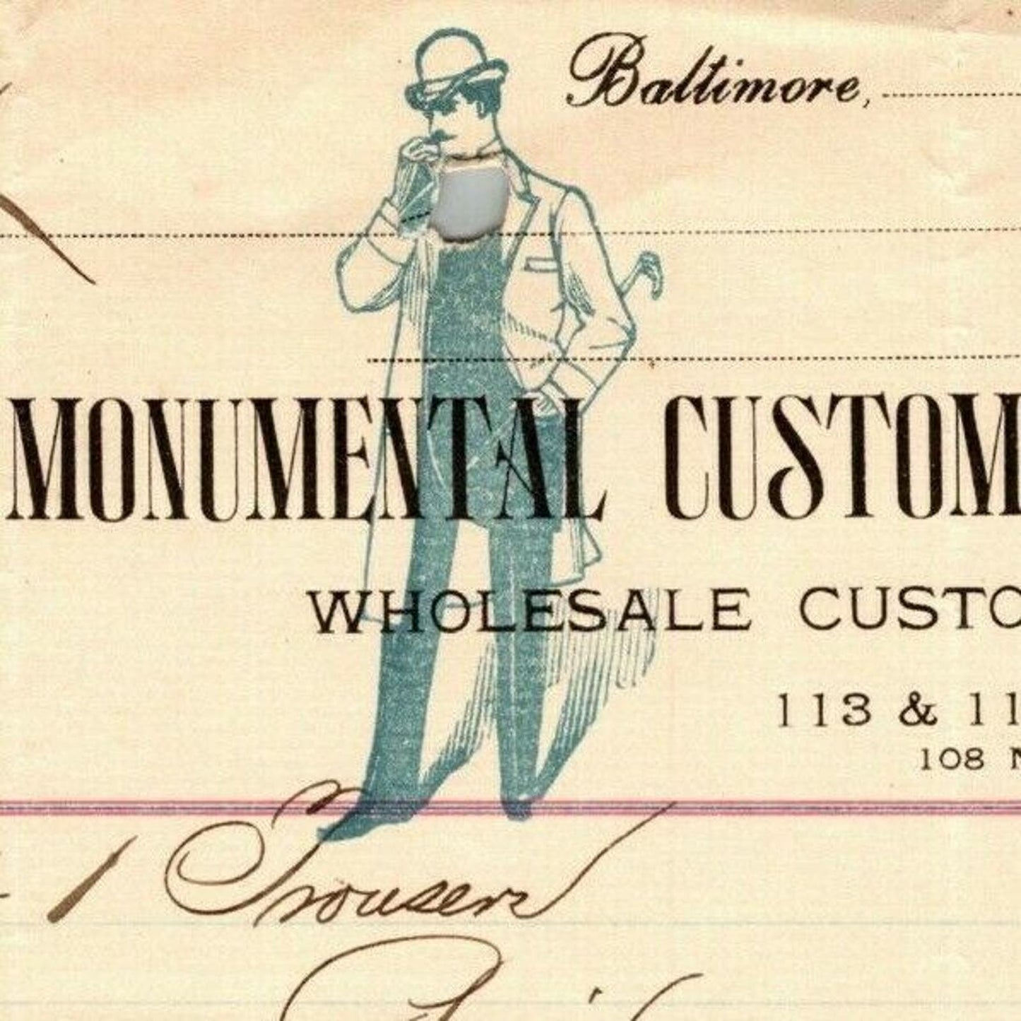 1900 Letterhead Billhead "Monumental Custom Tailors" Baltimore Ephraim Baker*