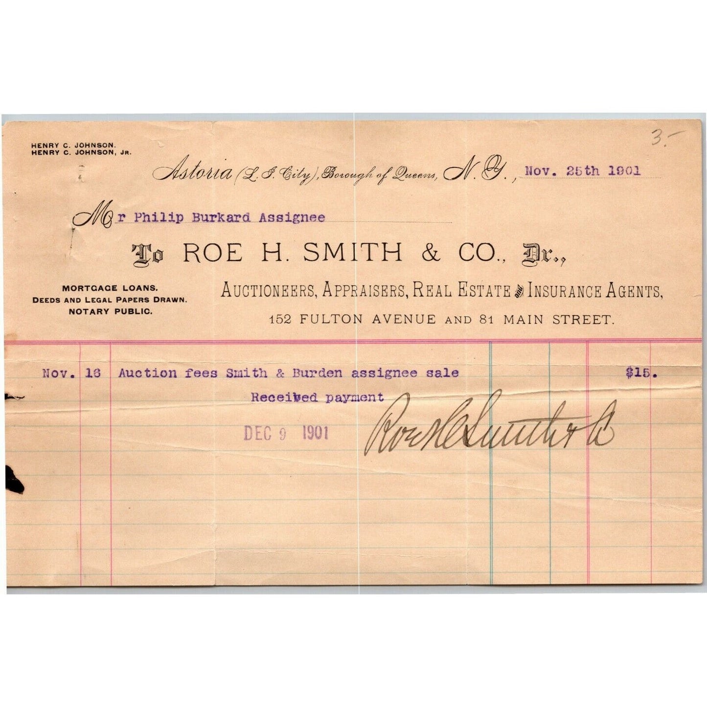 1901 Astoria LIC, NY Letterhead Roe H. Smith Co. Auctioneers RE & Ins. Agents