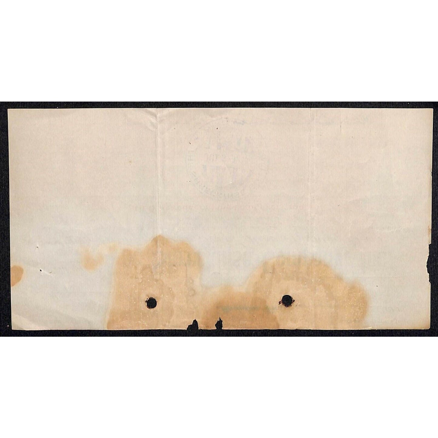 On lined accounting paper with use of red ink lines. Showing signs of age, wear, handling and toning - mostly heavy top edge staining and loss. Expected fold creases from posting. It measures approx. 4 1/2" x 8 1/2" In fair condition. You will receive the exact example as seen in the photos. Would display very well in a clear vinyl page protector as part of your binder collection or framed.