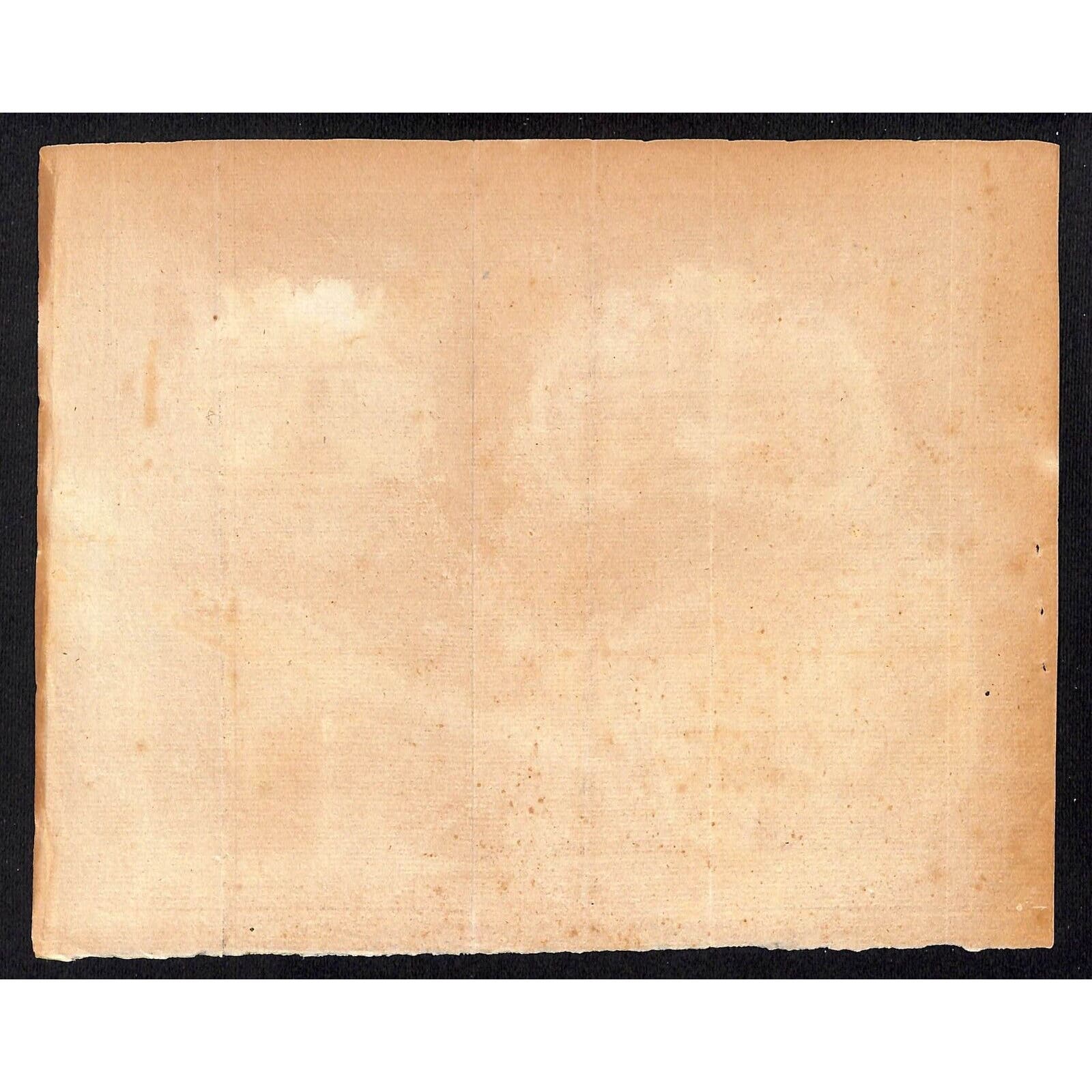On laid paper stock. Showing minor signs of wear and handling consistent with its age. Several vertical fold creases. No tears or other major issues to note. Overall, good condition. Will display well in your collection. An ideal framing candidate. You will receive the exact sheet as shown in the photos. It measures approx. 7 1/2" x 9 3/8"
