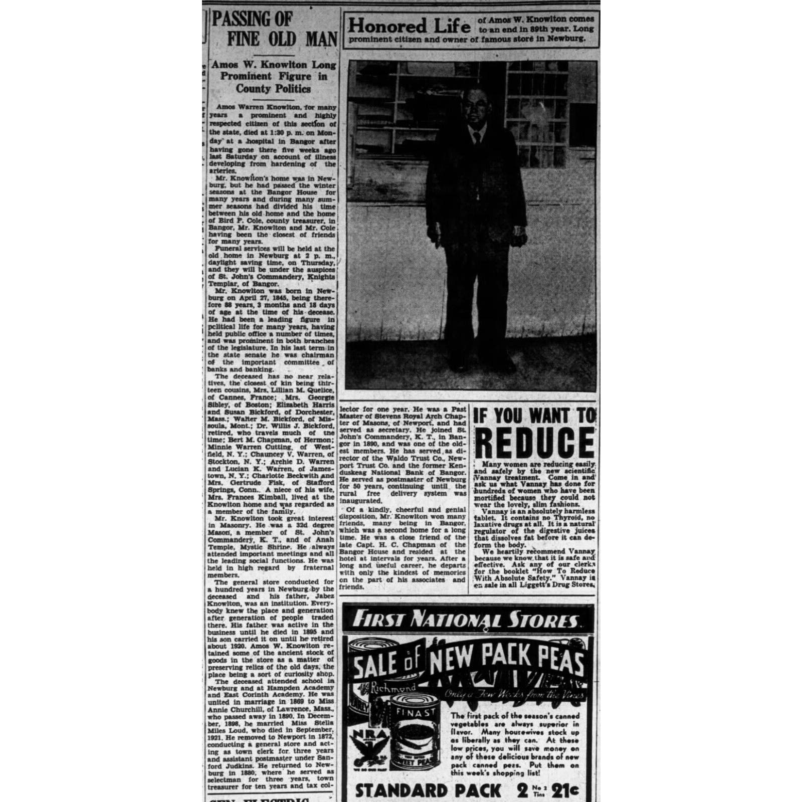*Amos W. Knowlton (1845 - 1933) See last photo for obituary.