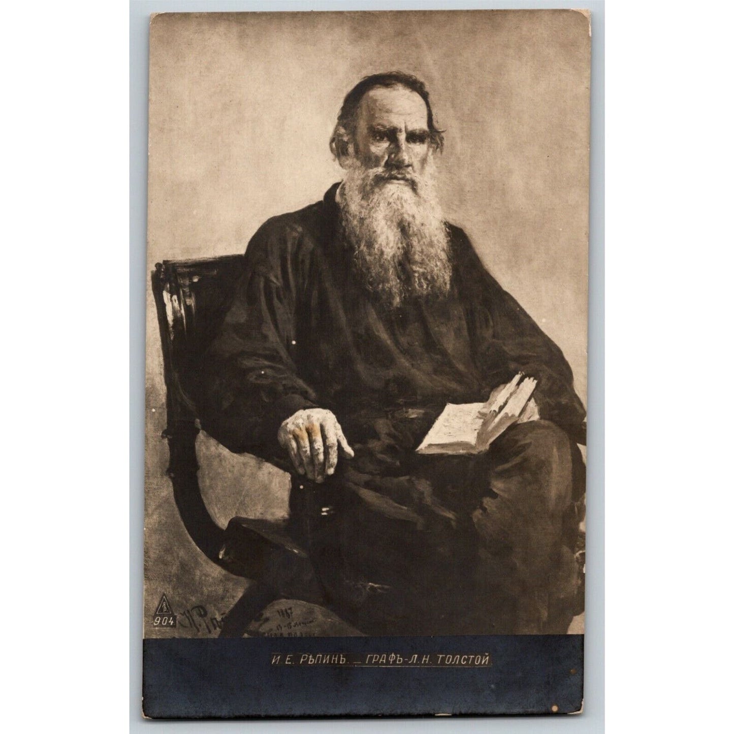 c1910 Vintage Russian Art Postcard Leo Tolstoy Sitting in Chair with Book (4185)