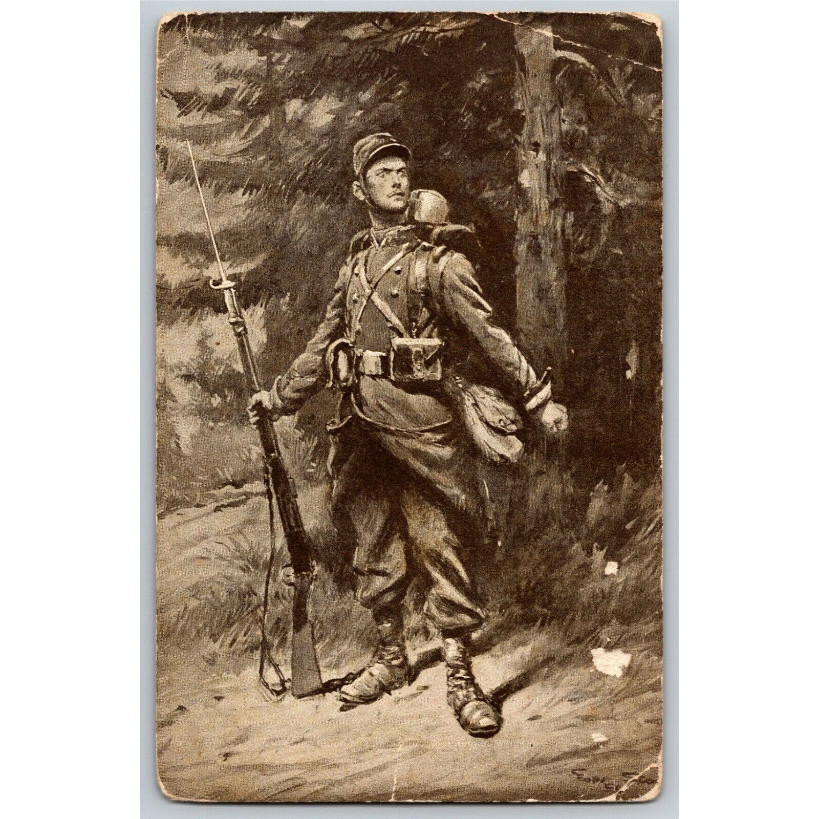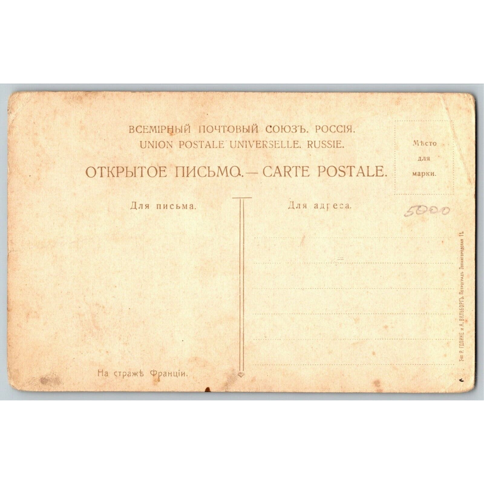 c1914-18 Russian Military Art Postcard - Alert French Soldier Standing Guard
