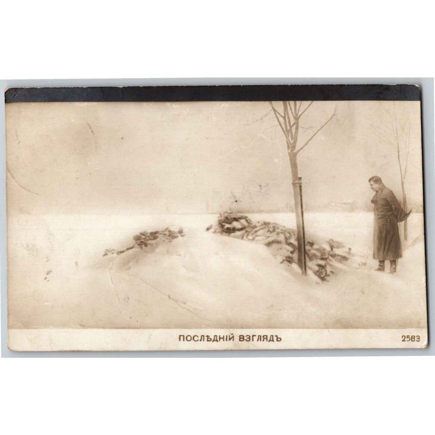 c1914-18 Russian / Ukrainian Military Art Postcard - "The Last Look" Soldier