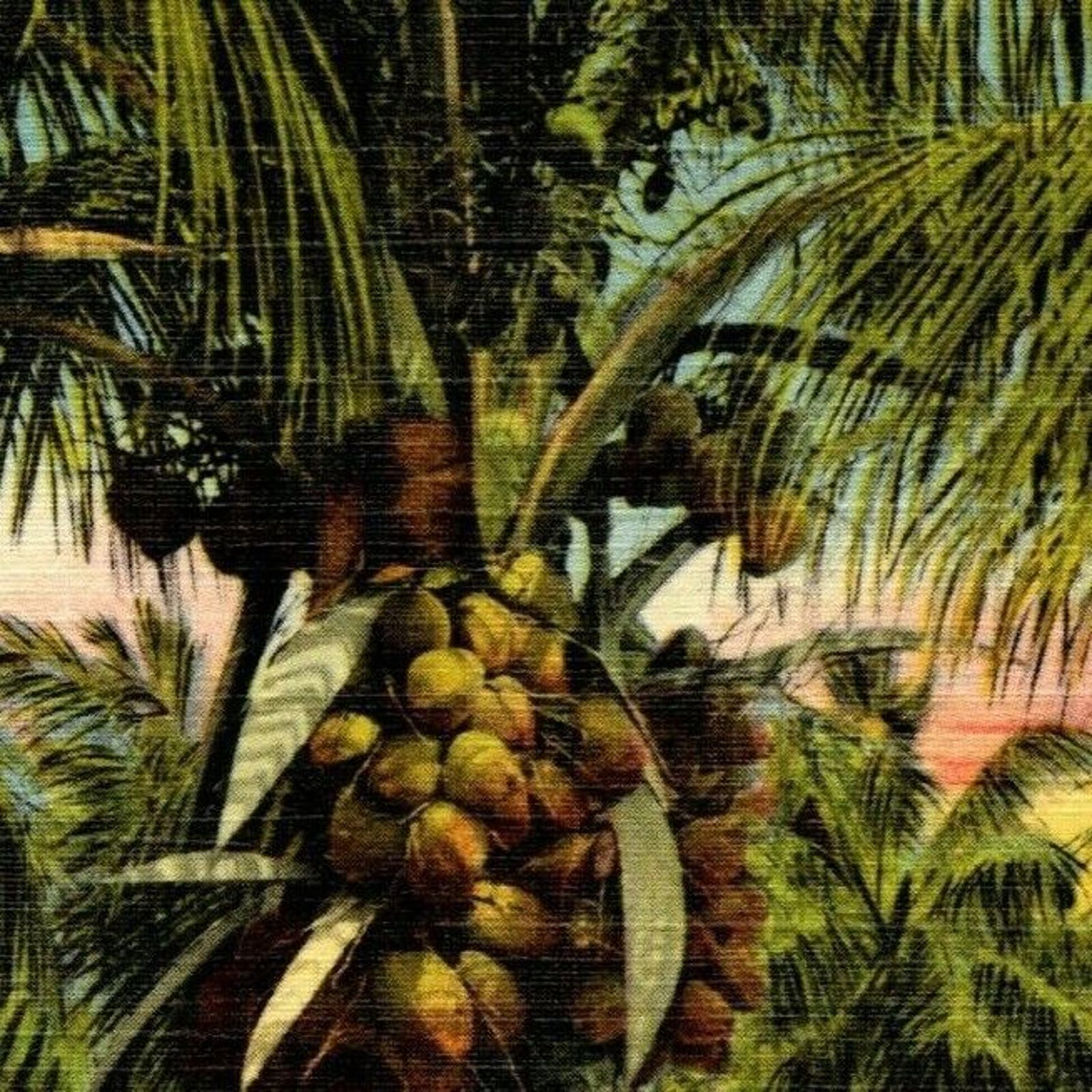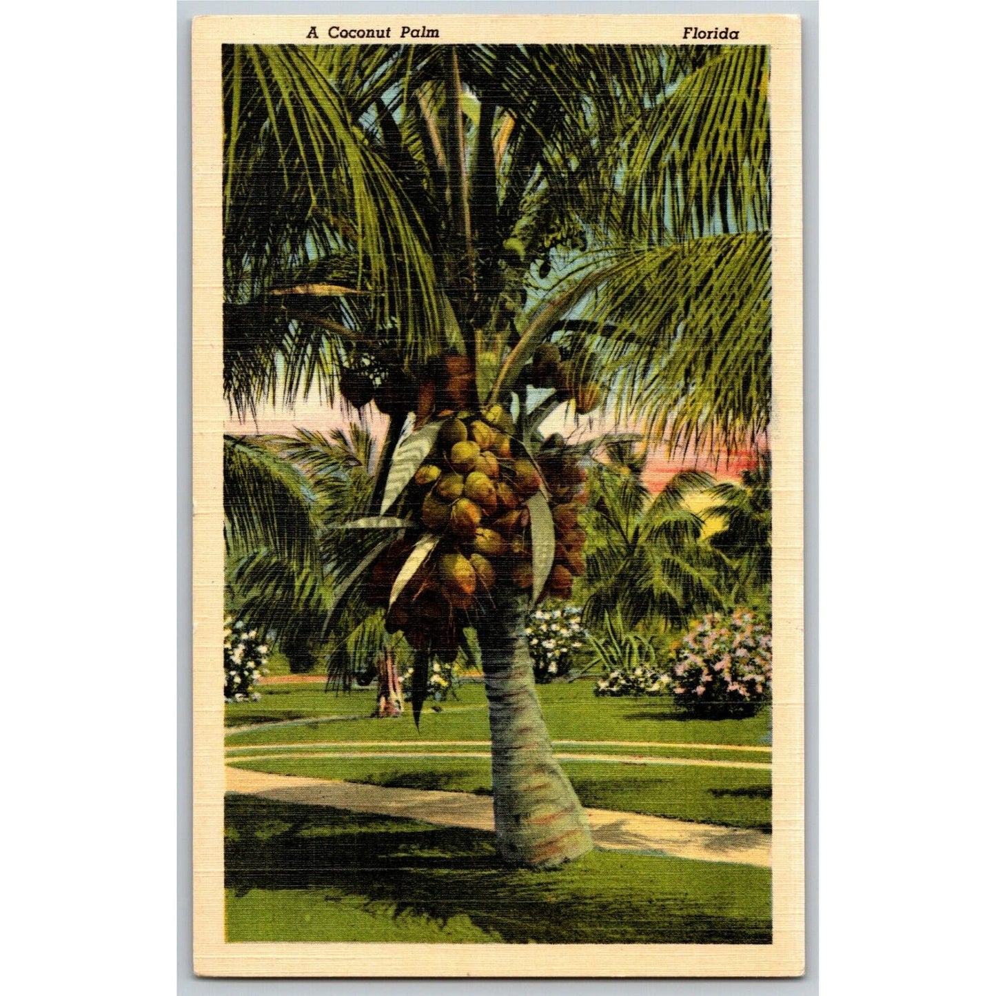 c1940's Vintage Linen Fruit Postcard "A Coconut Palm - Florida" Unposted - VGC