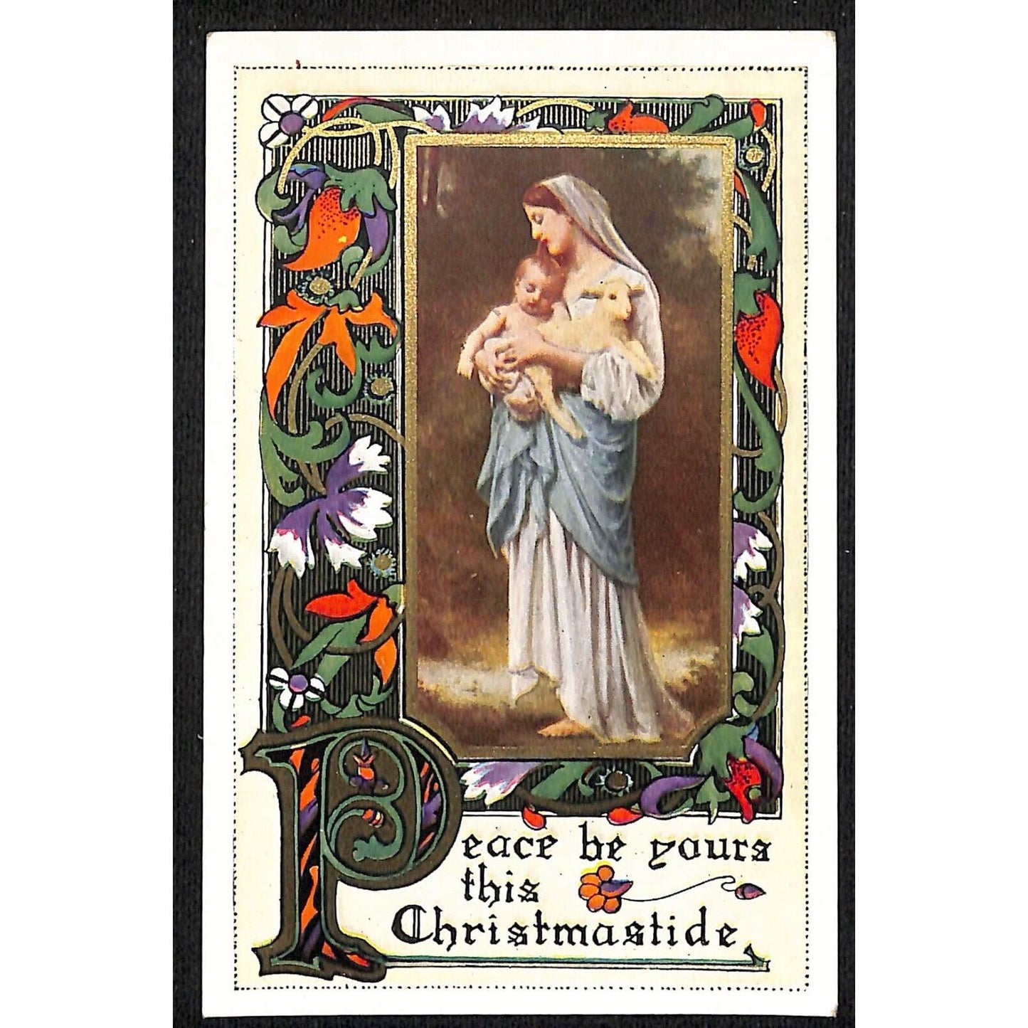 Christmas Postcard "Peace Be Yours this Christmastide" Lamb c1915-20's Gilt