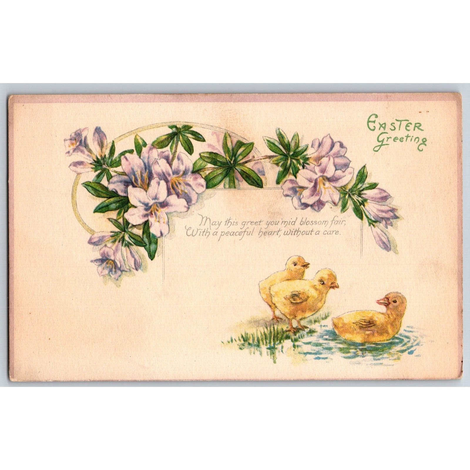 Easter Postcard "Easter Greeting" Floral Poem Baby Chicks Pond NP - c1920
