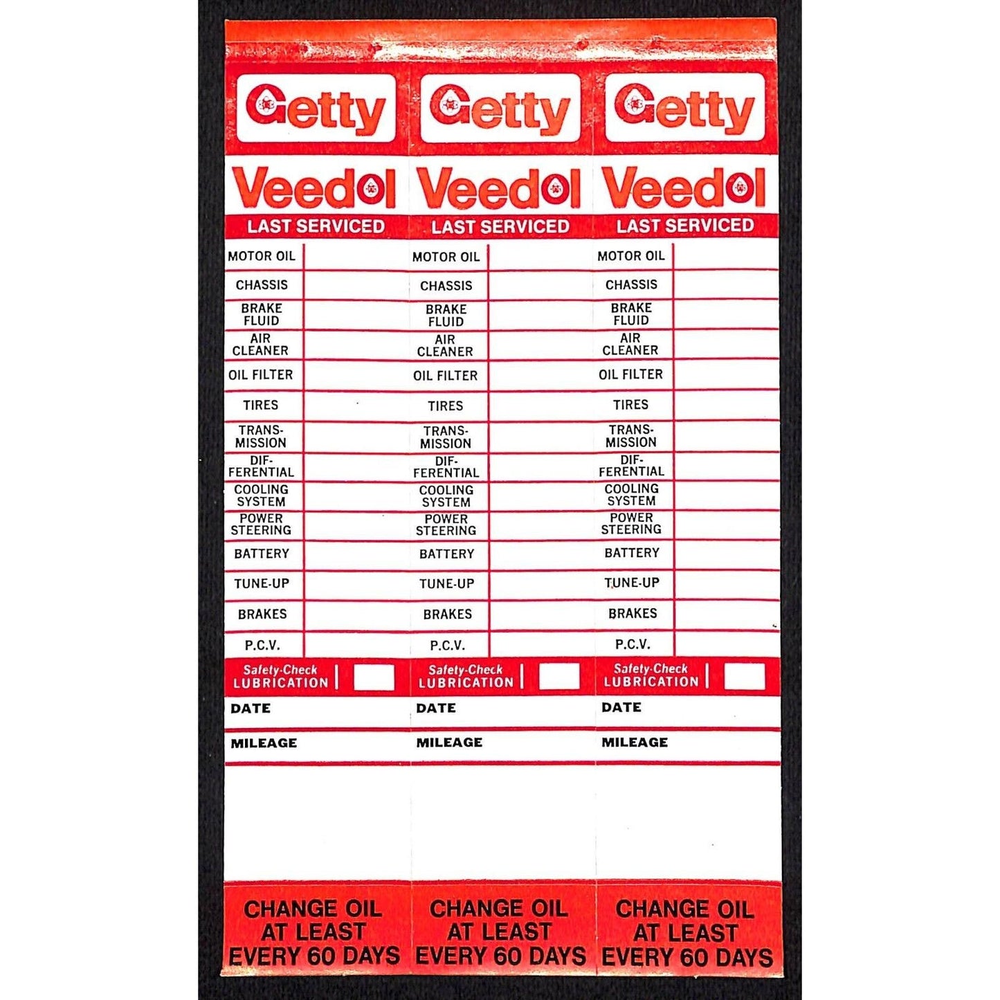 Getty Veedol Service / Oil Change Door Jam Auto Sticker Sheet of 3 c1970 (#2)