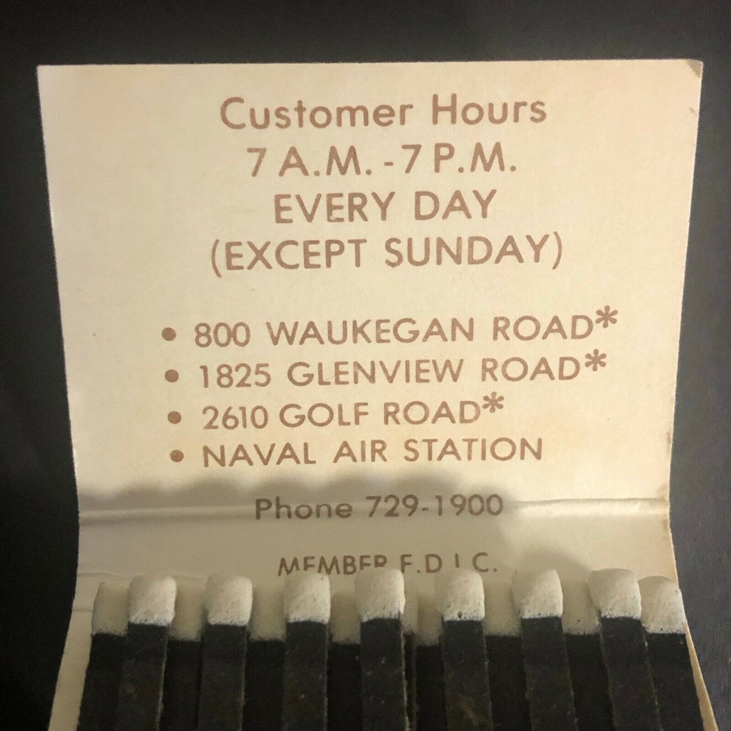 "Glenview State Bank" Illinois Open 7am 7pm c1970's-80's Full Matchbook