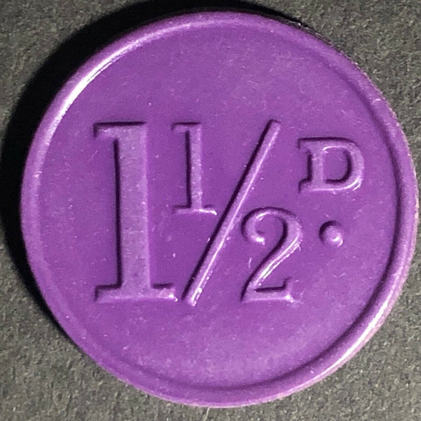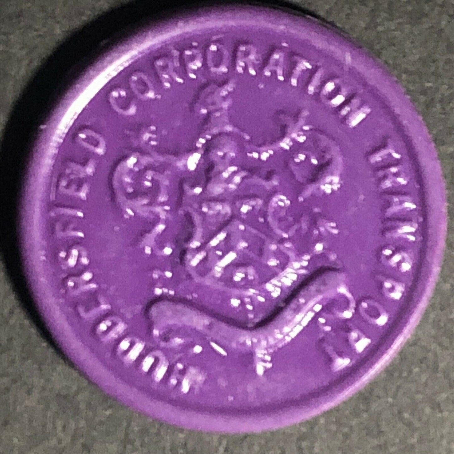 Huddersfield Transport England Plastic Token Purple 1 1/2D 22mm c50's-60's