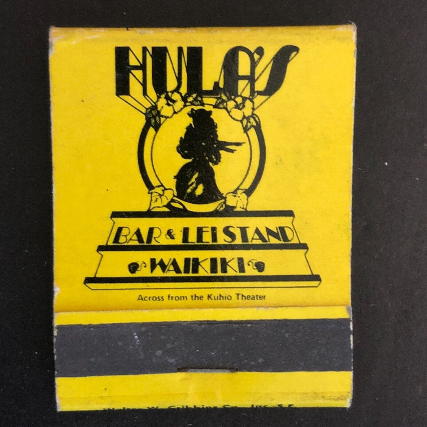 Hula's Bar & Lei Stand Waikiki, HI Full Matchbook c1973-79 Scarce