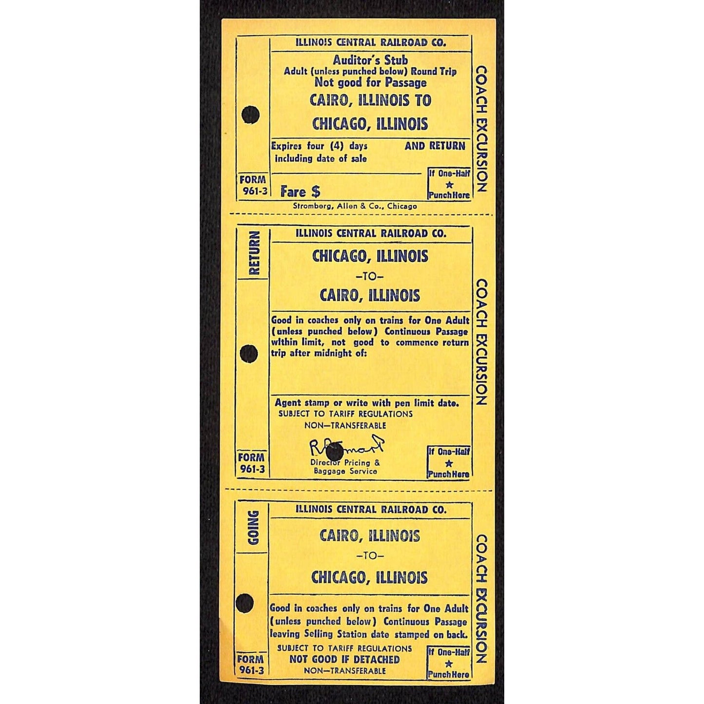 Illinois Central Railroad Unnumbered Coach Excursion SAMPLE Ticket to Cairo