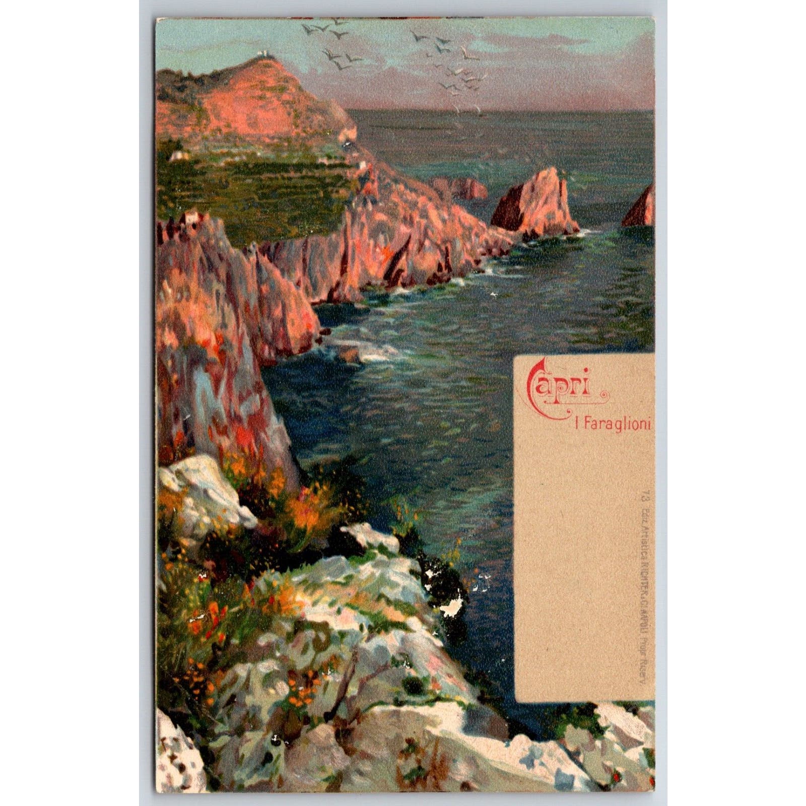 Italian Postcard Capri Rock Cliffs Sea Shoreline Seagulls c1901-1907