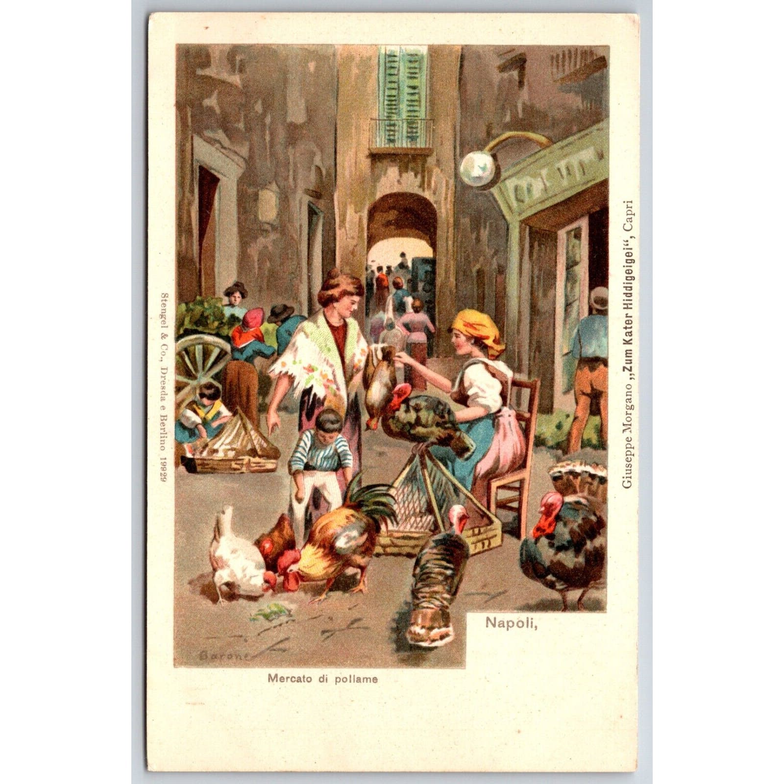 Naples Chicken Market Busy Street Vendor Scene Postcard c1901-1907 NP