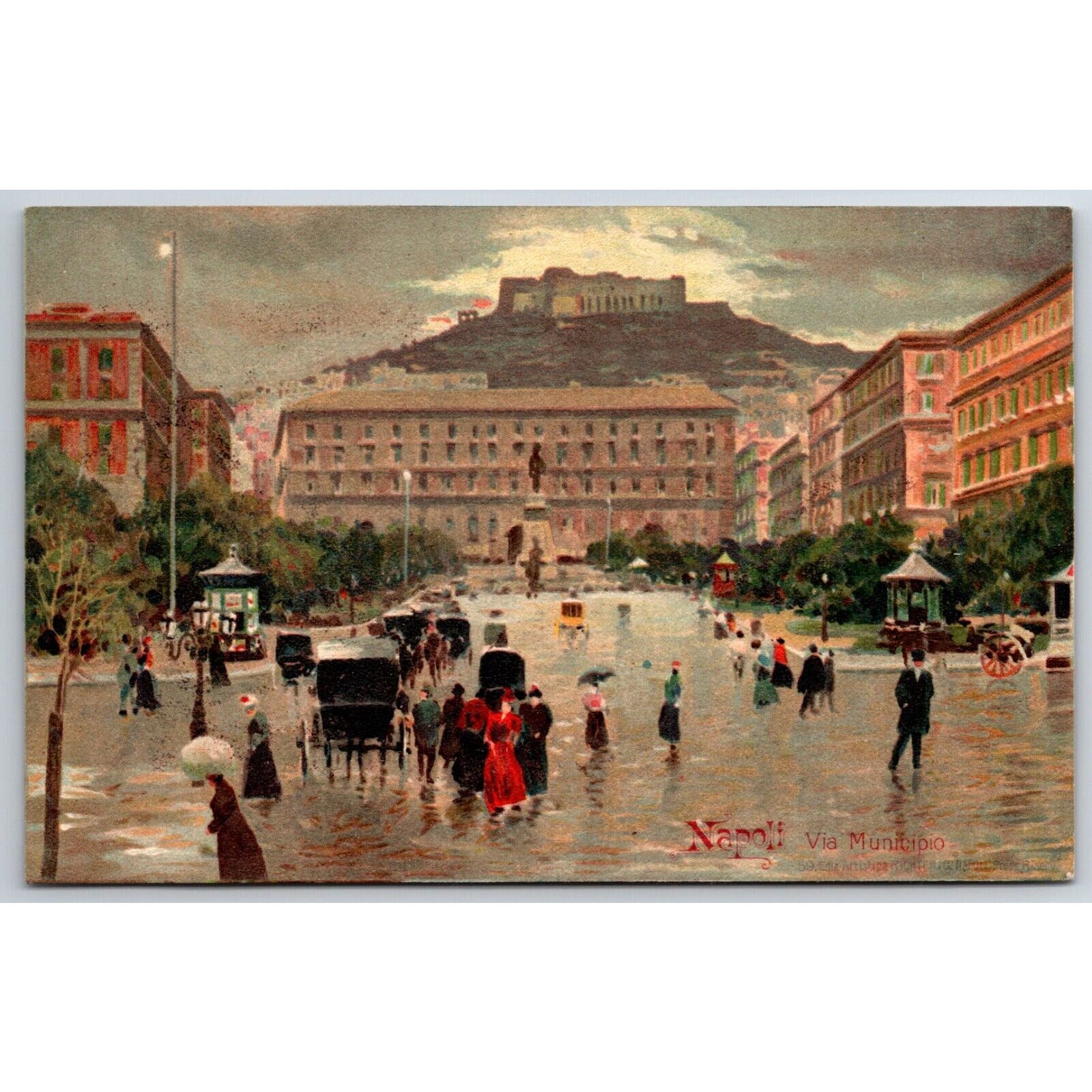 Naples Town Hall w/ Busy Street Scene Postcard c1901-1907 NP