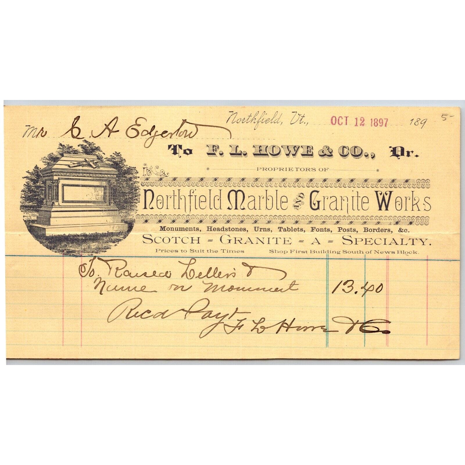 Northfield, VT "Northfield Marble & Granite Works" 1897 Headstones Billhead