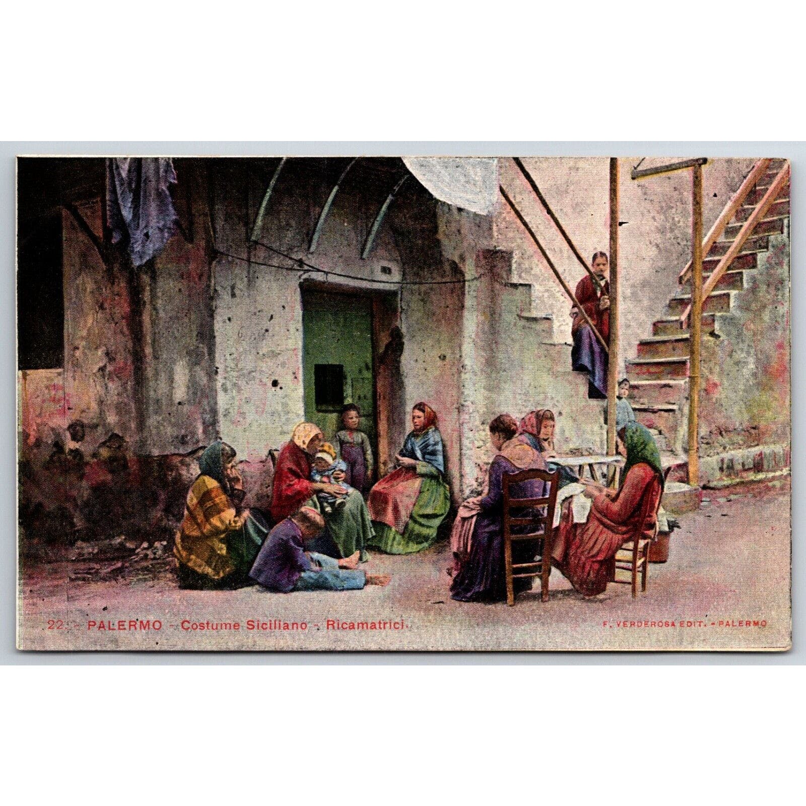 Palermo Embroiderers Gather Near Home Doorway Postcard c1901-1907 NP