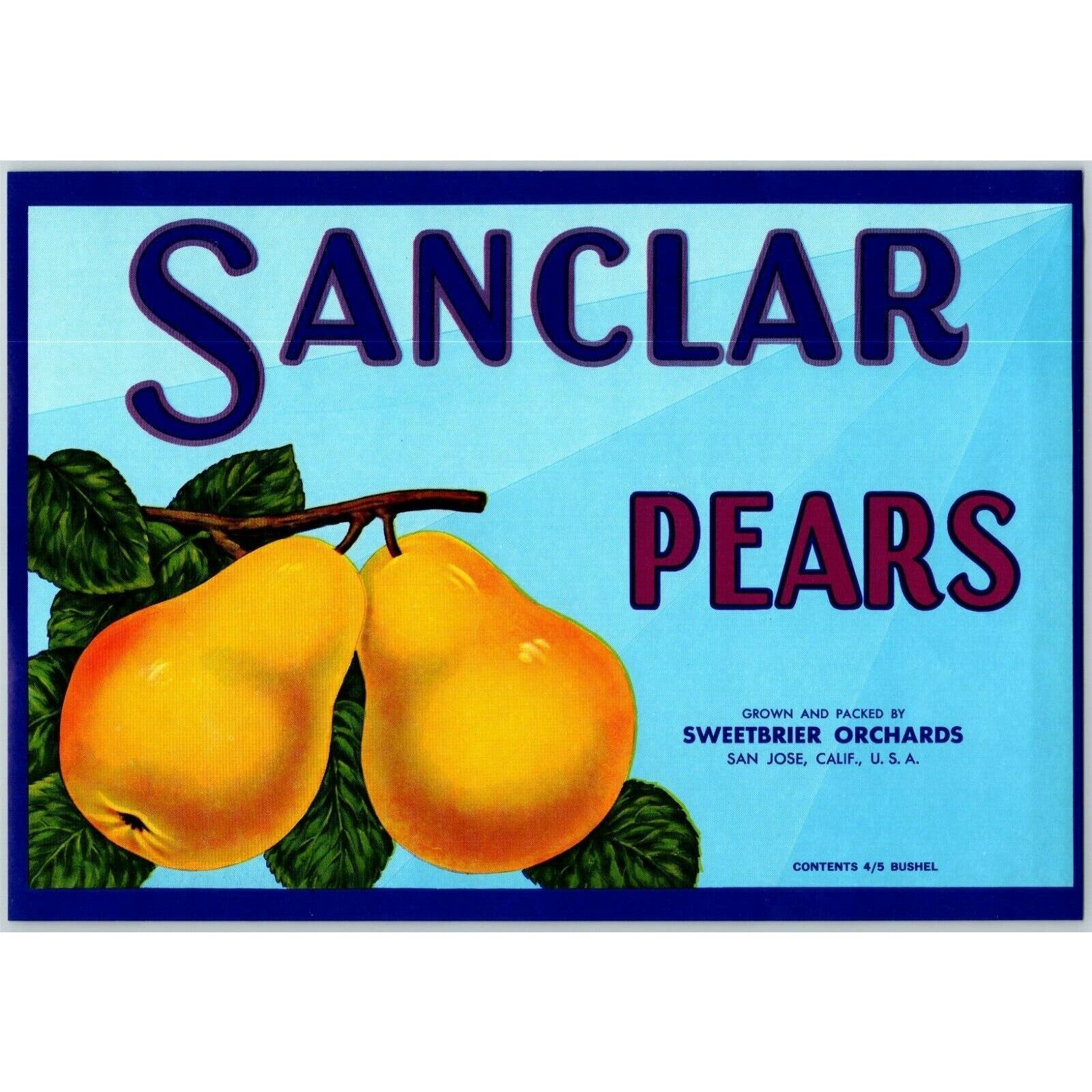 Sanclar Pears Vintage Original Paper Fruit Crate Label Sweetbrier San Jose