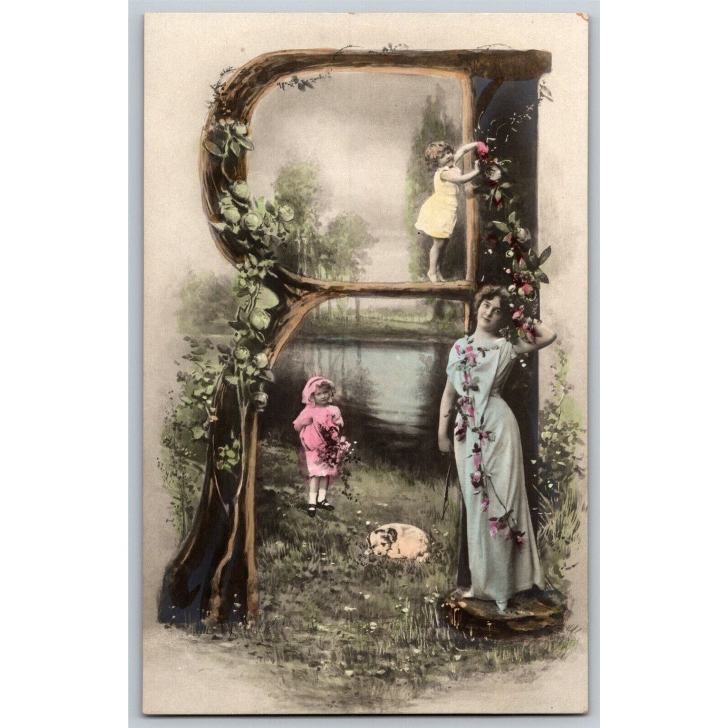 Scarce c1904 Vintage Large Letter Cyrillic Russian Monogram Postcard "Ya' Kids