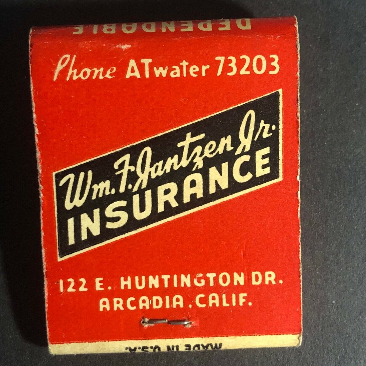 Scarce c1940's Full Matchbook William F. Jantzen Jr. Insurance Arcadia, Calif.