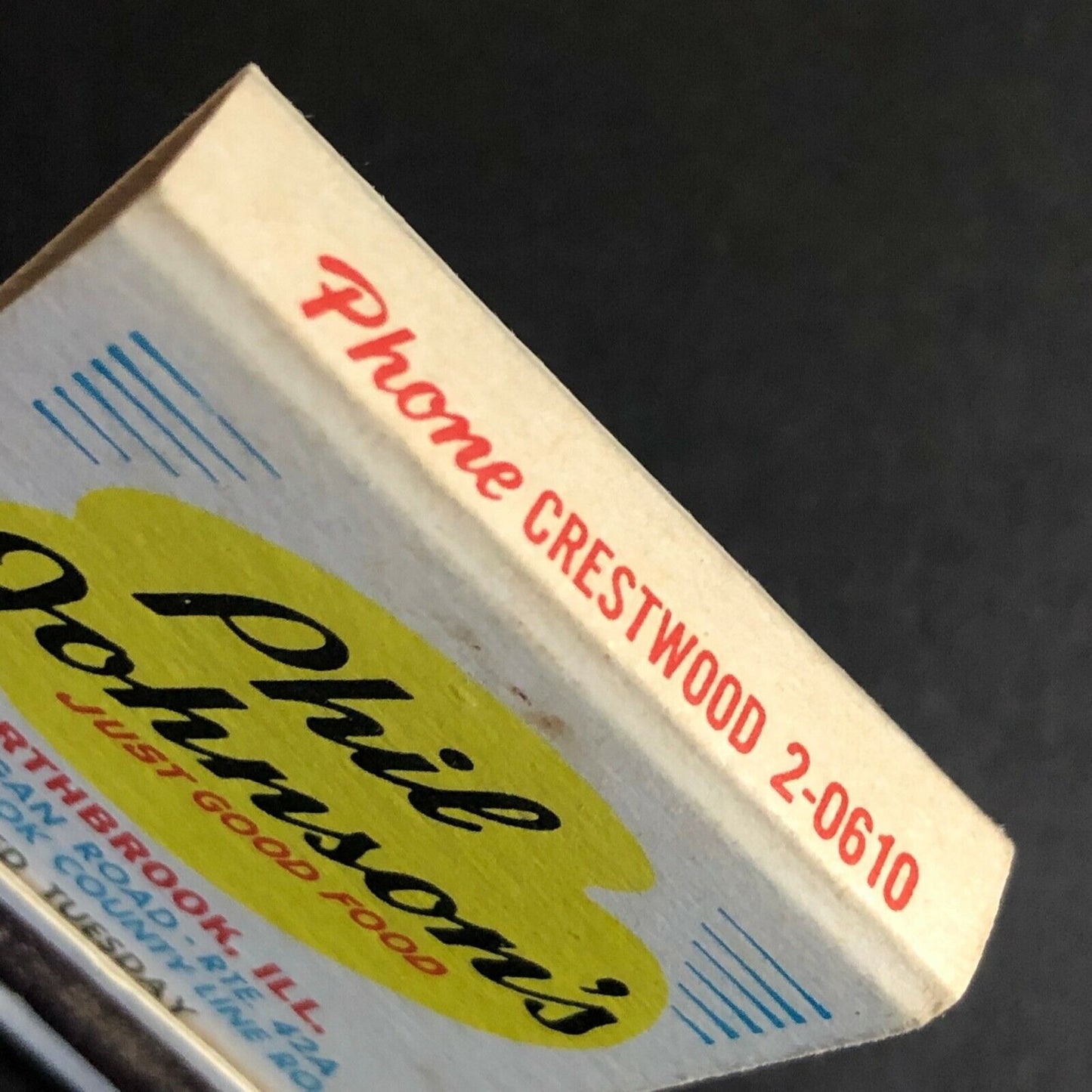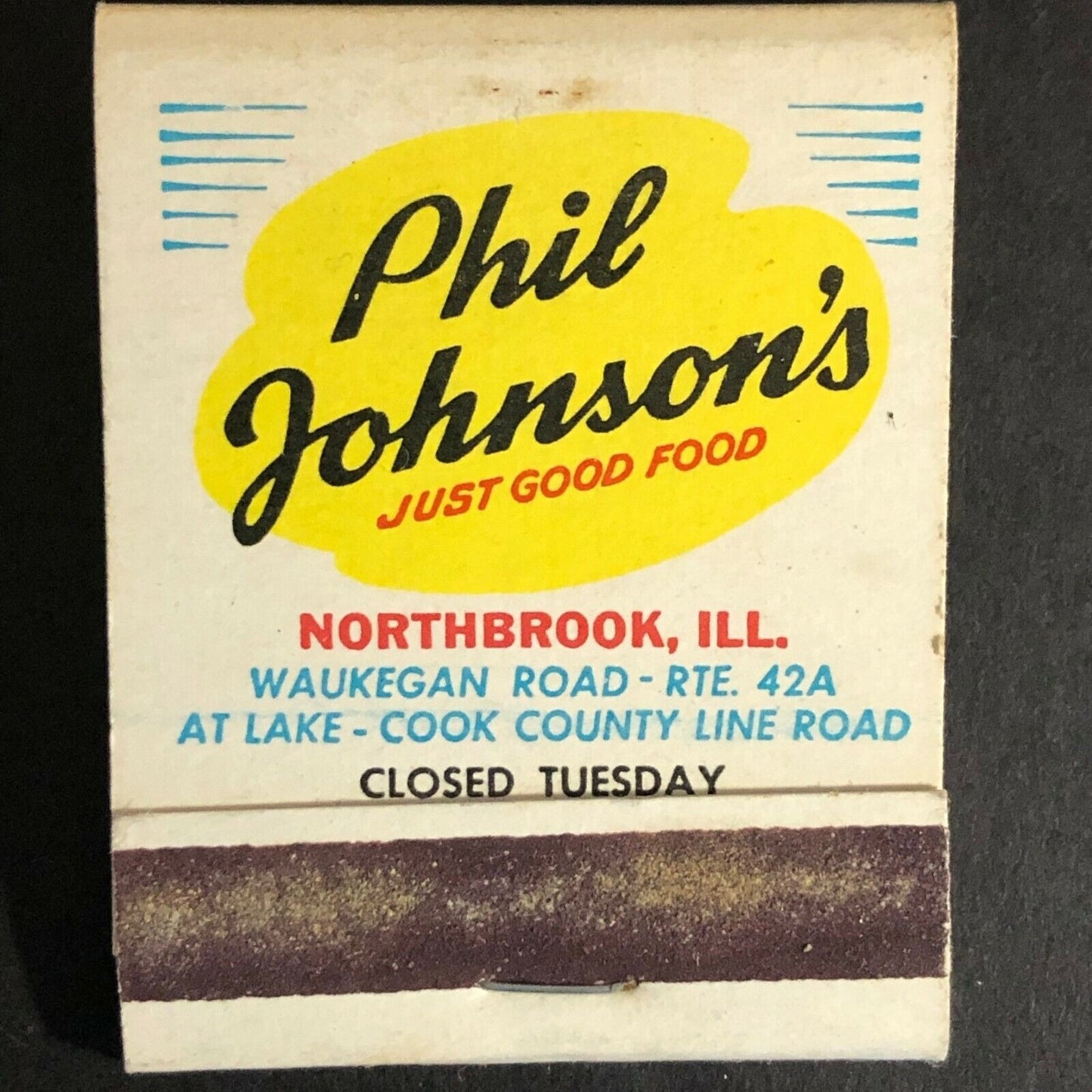 Scarce Vintage c1950's-60's Full Matchbook Phil Johnson's Rest. Northbrook. ILL