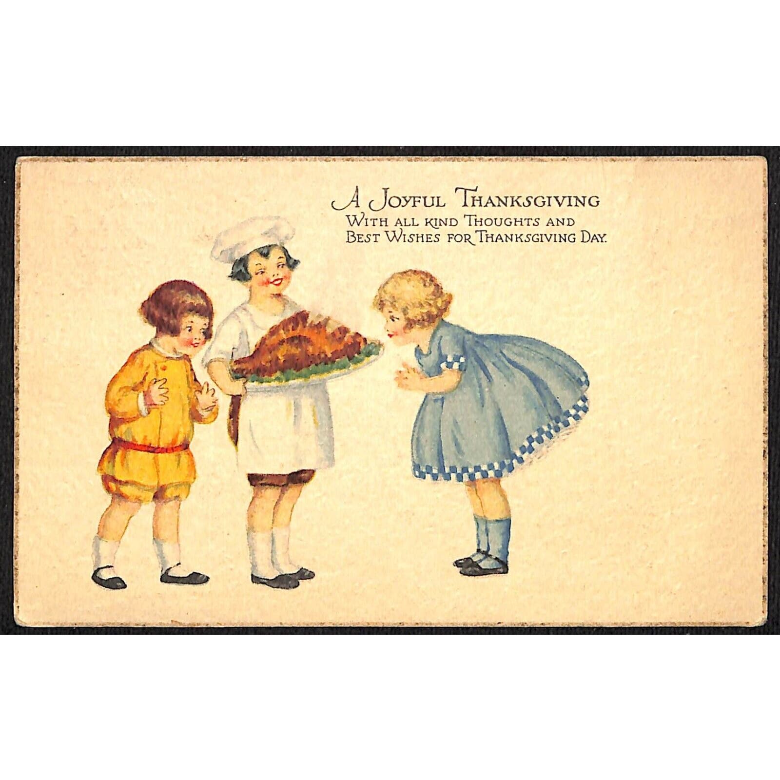 Thanksgiving Postcard Girls Cook / Admire Turkey Chef Hat 1925 Arlington NJ PM
