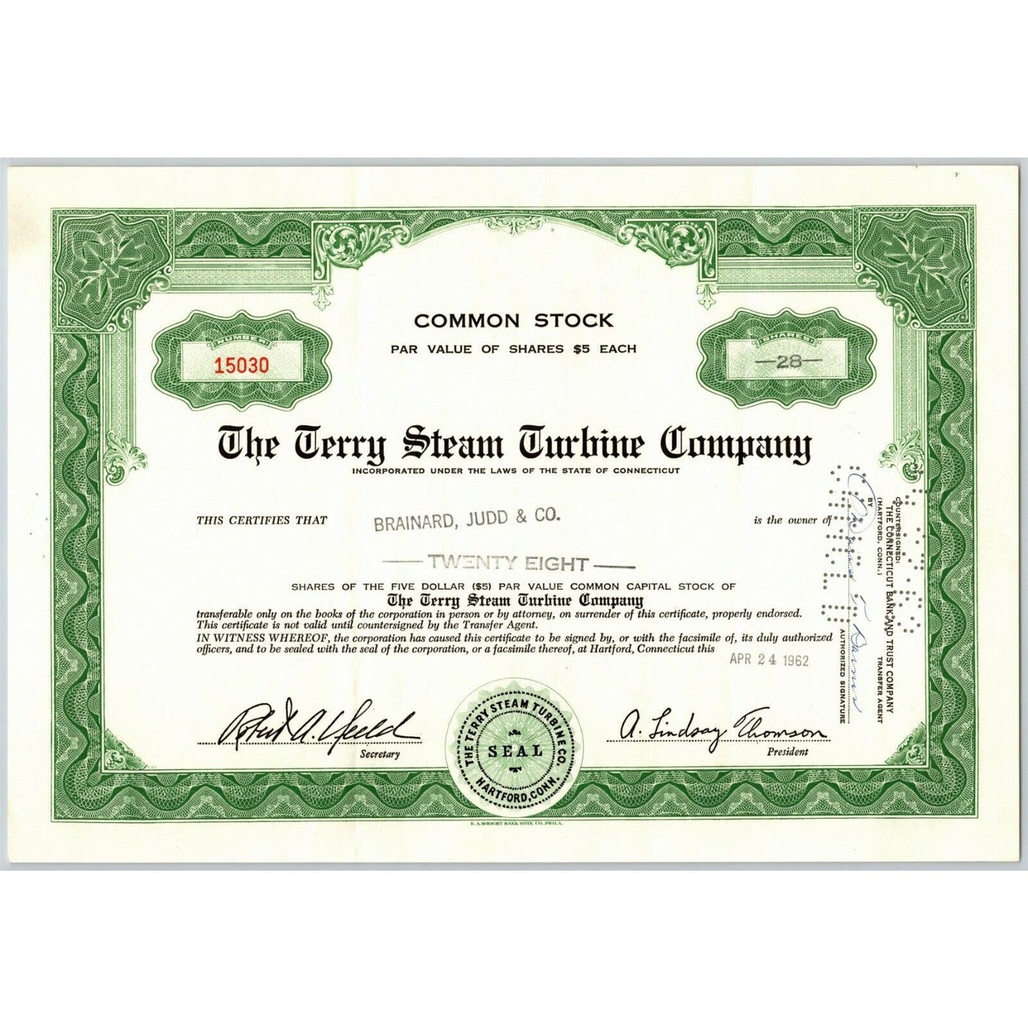 Vintage 1962 Stock Certificate "The Terry Steam Turbine Co." Hartford, CT