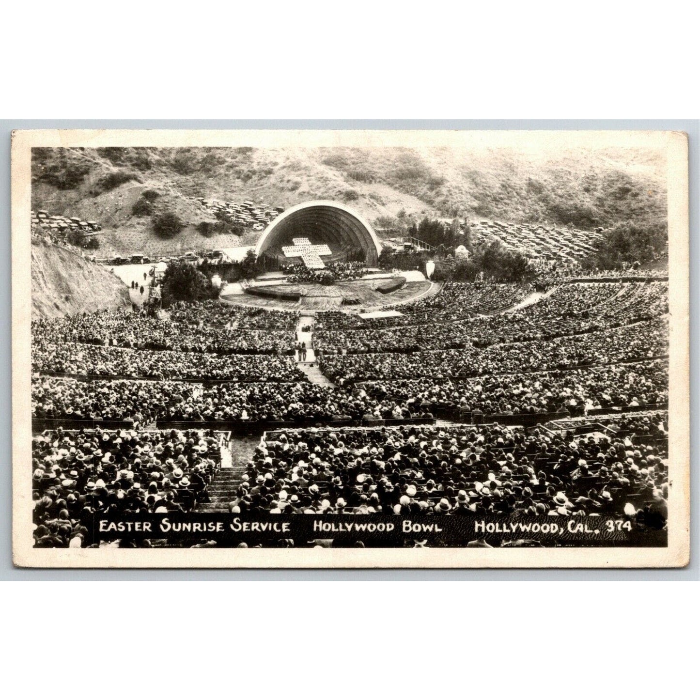 Vintage Glossy RPPC* Hollywood Bowl Easter Sunrise Service Postcard c1925-35