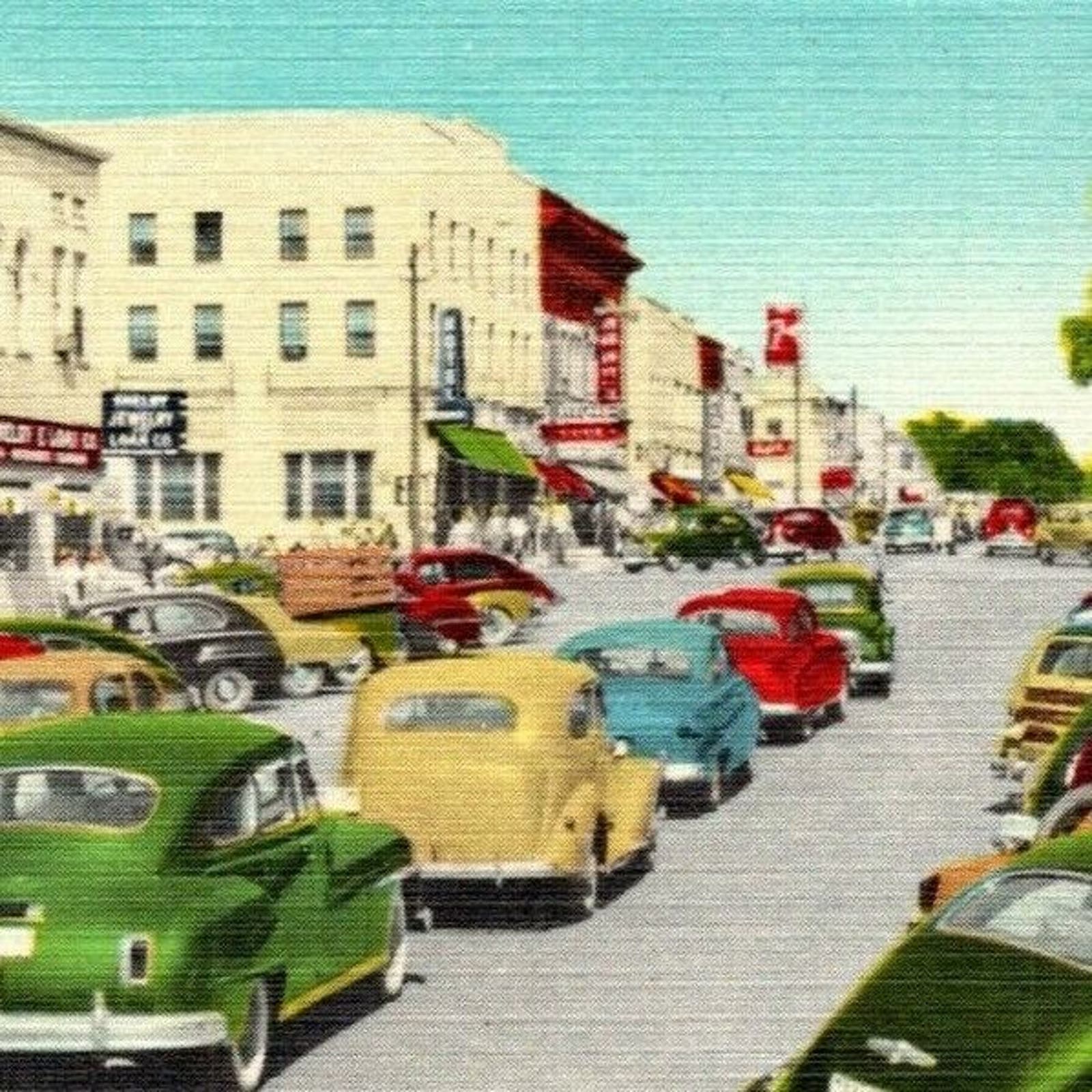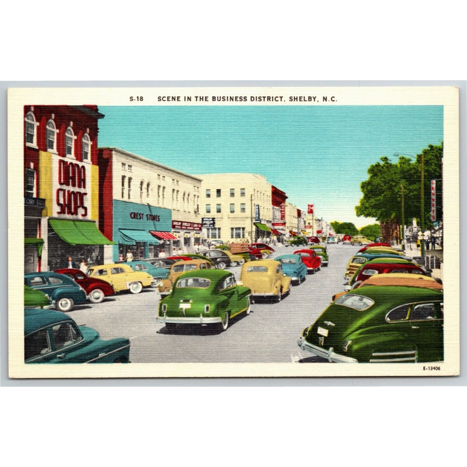 Vintage Linen Postcard Busy Street Business District Shelby, NC - UNP VGC
