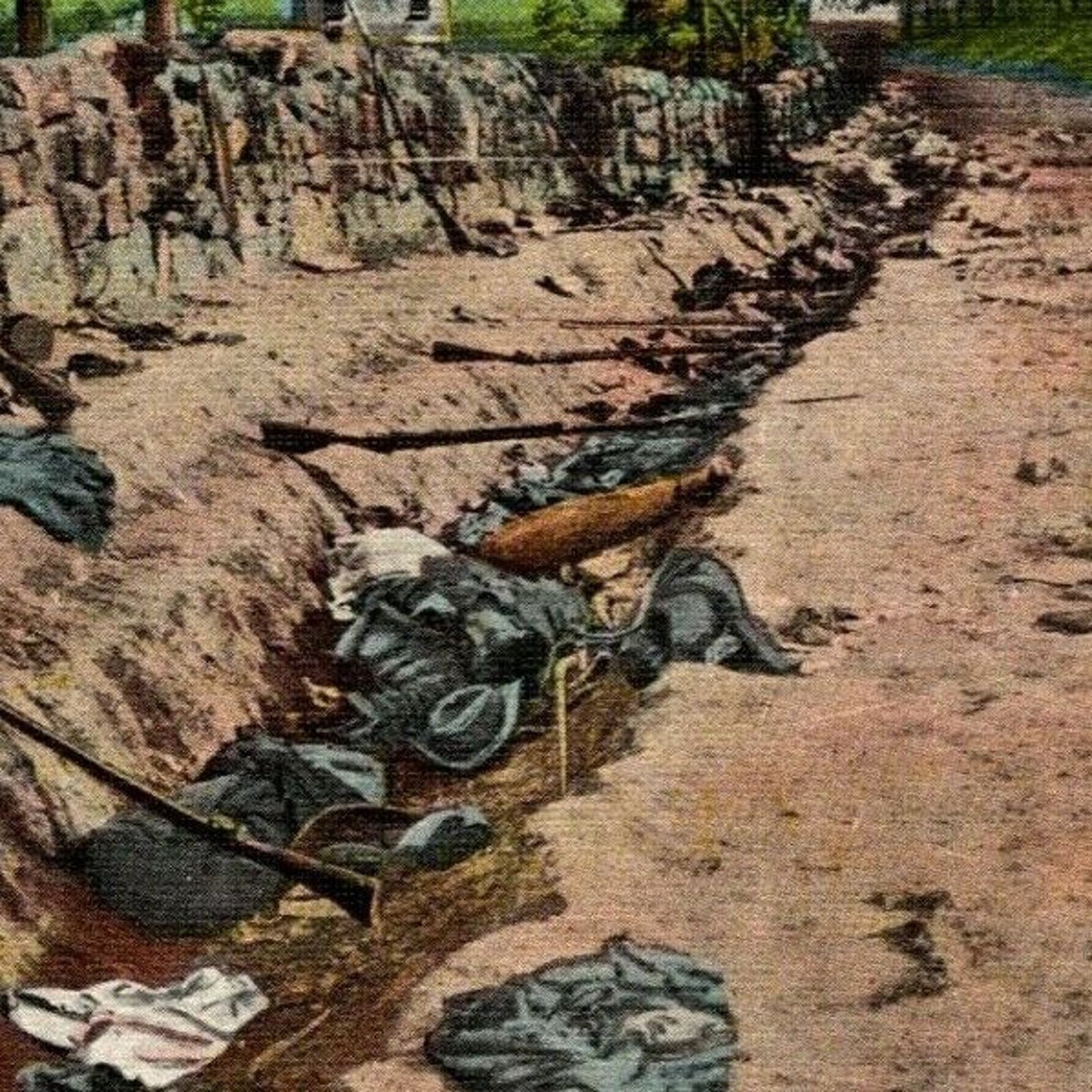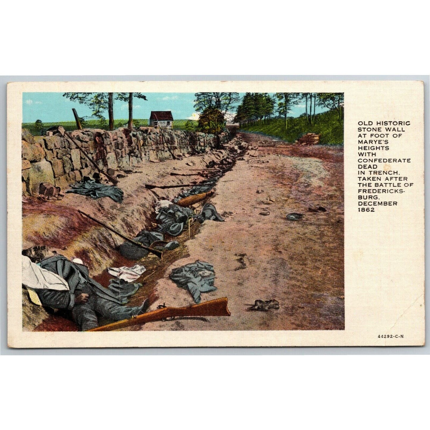Vintage Linen Postcard Confederate Dead in Trench Battle of Fredericksburg