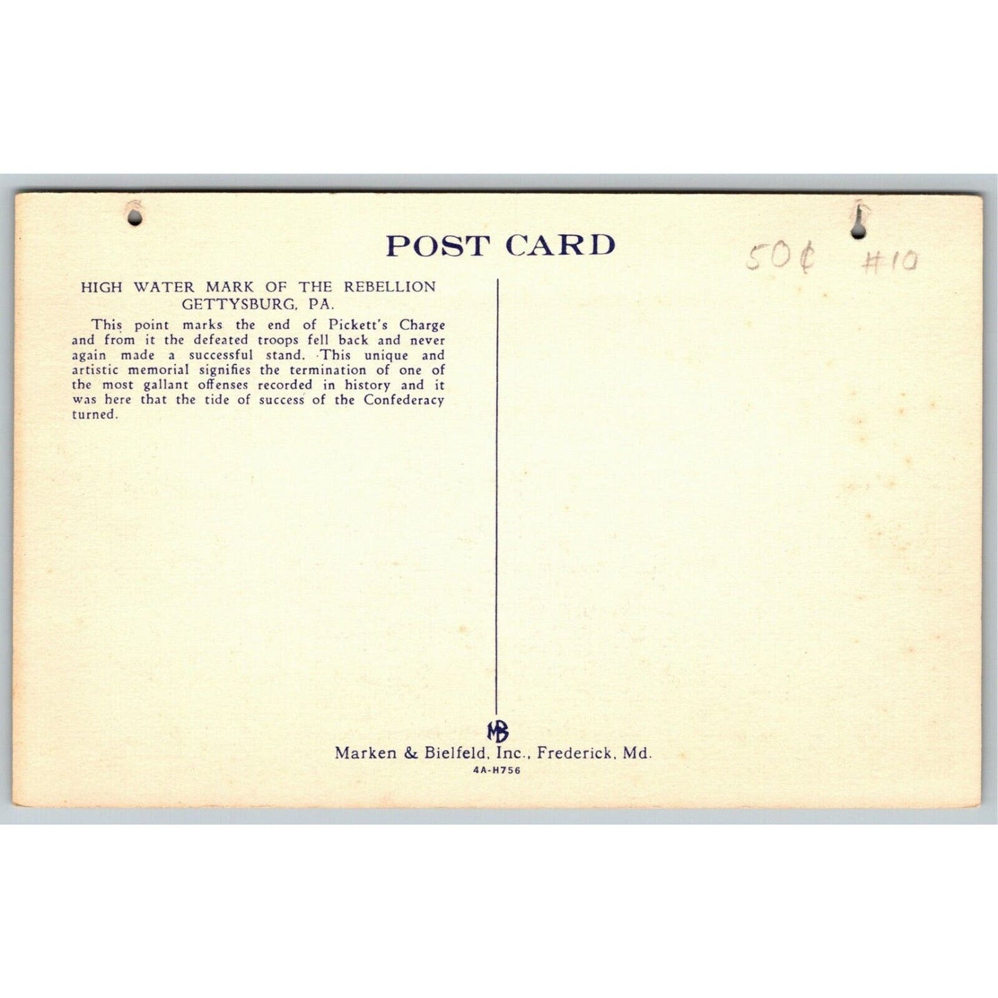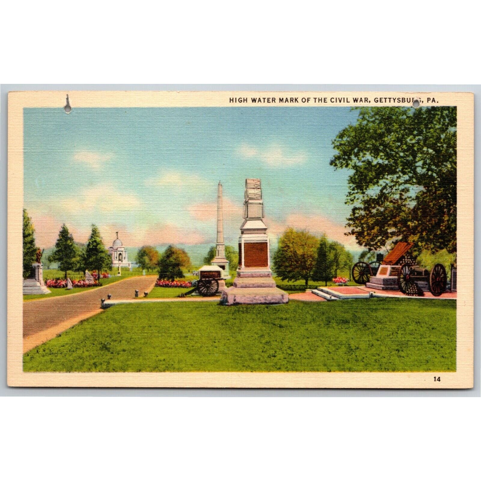 Vintage Linen Postcard High Water Mark of the Civil War, Gettysburg, PA Unposted