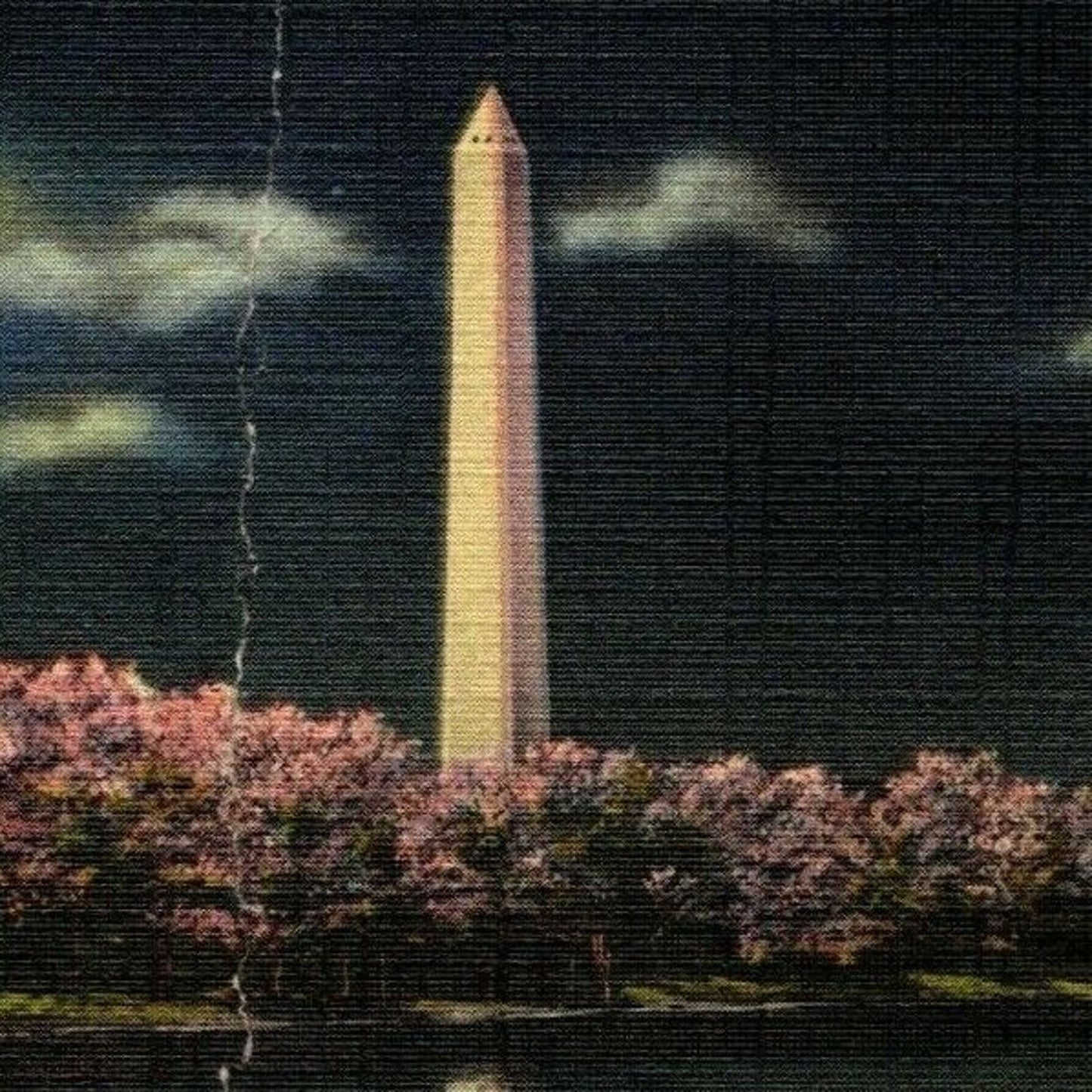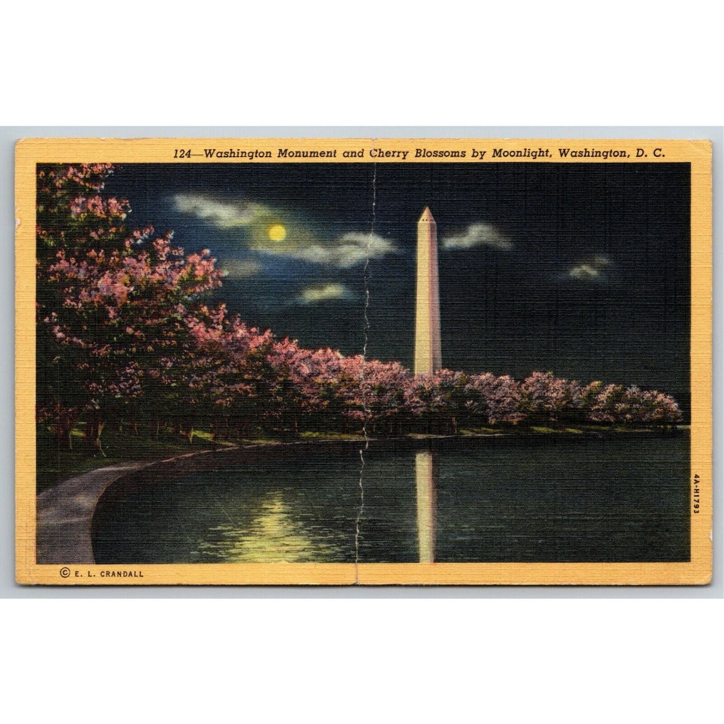 Vintage Linen Postcard Washington Monument and Cherry Blossom Moonlight c1949