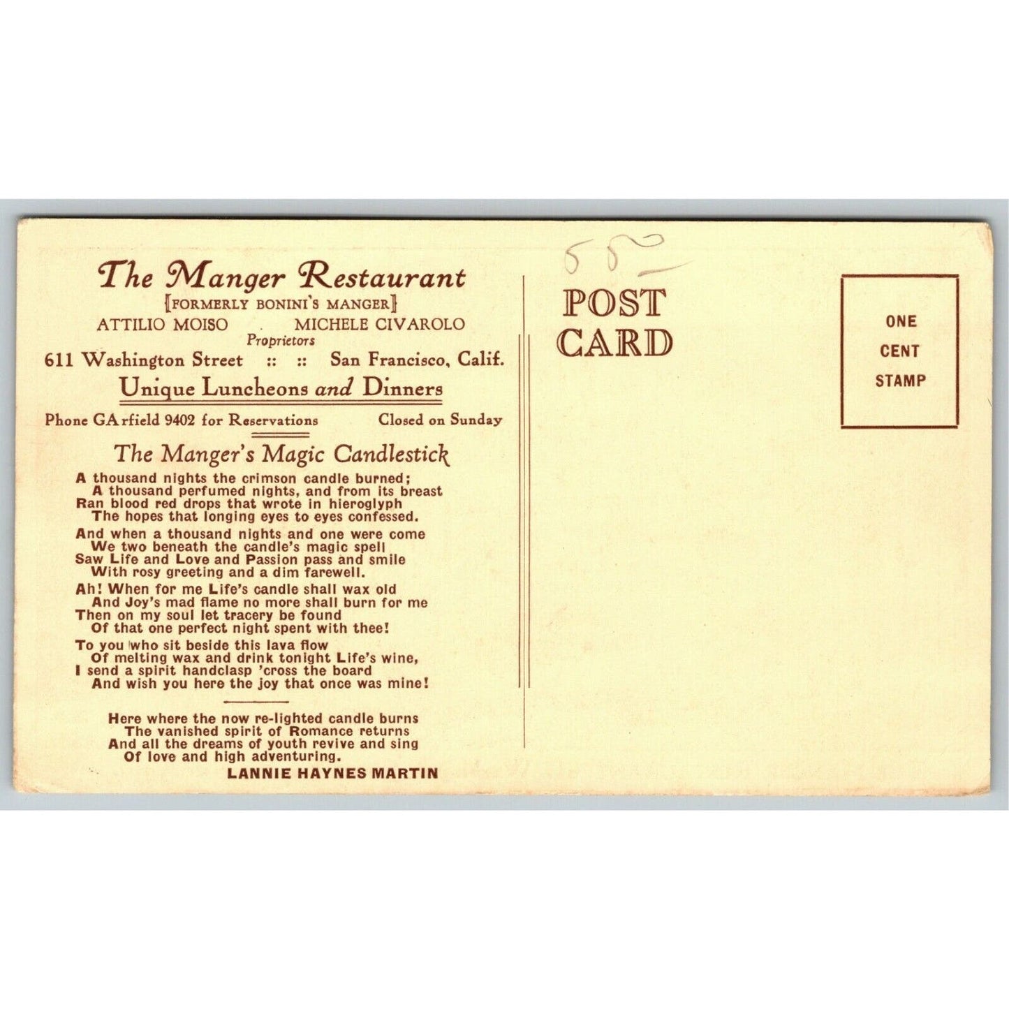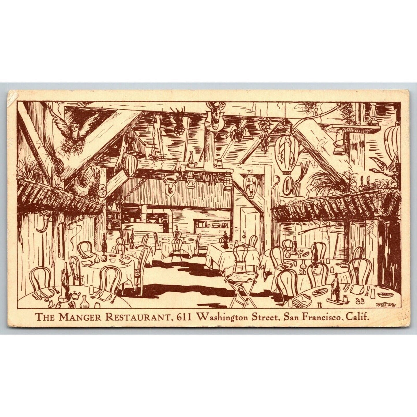 Vintage Postcard The Manger Restaurant Washington St. San Francisco c1950's-60's
