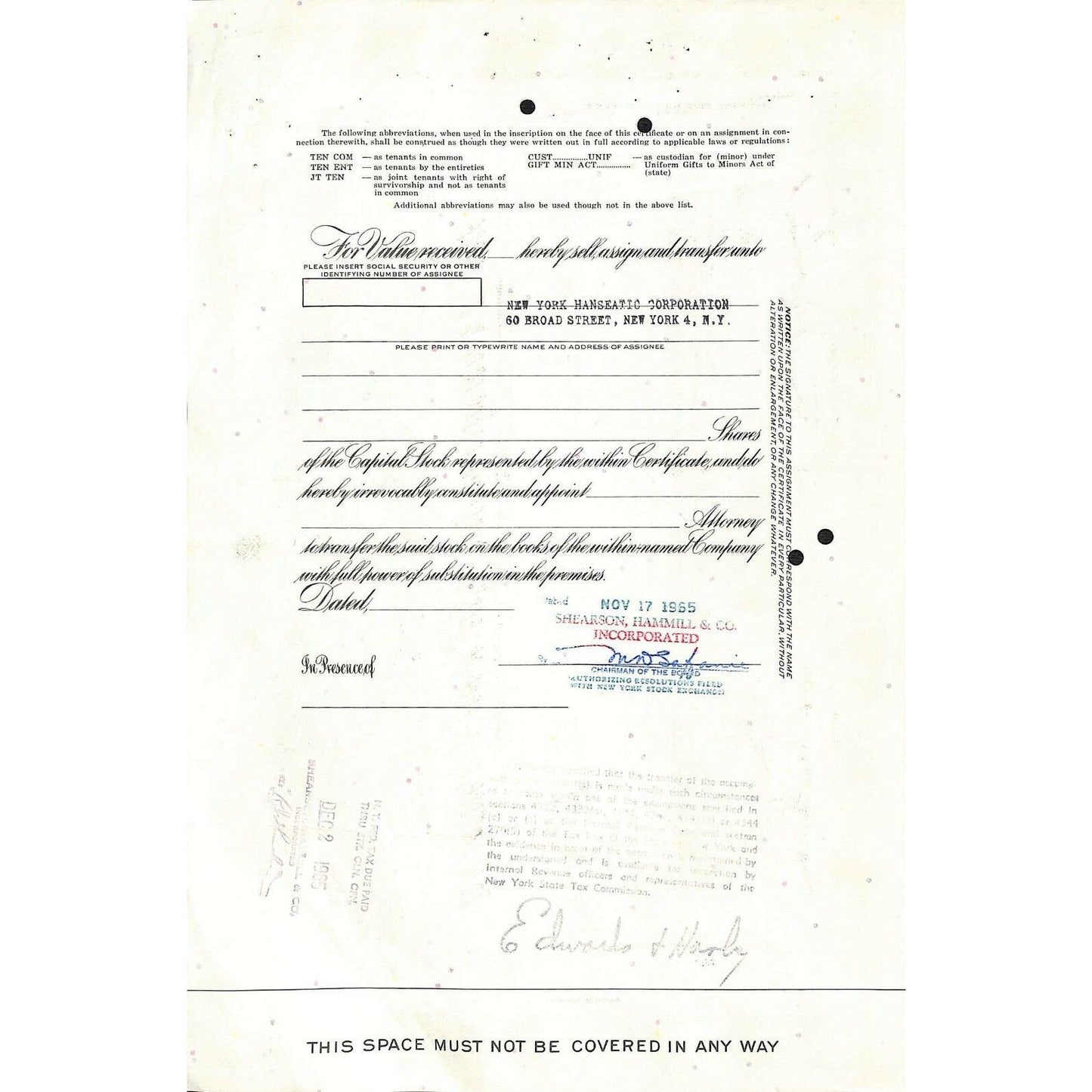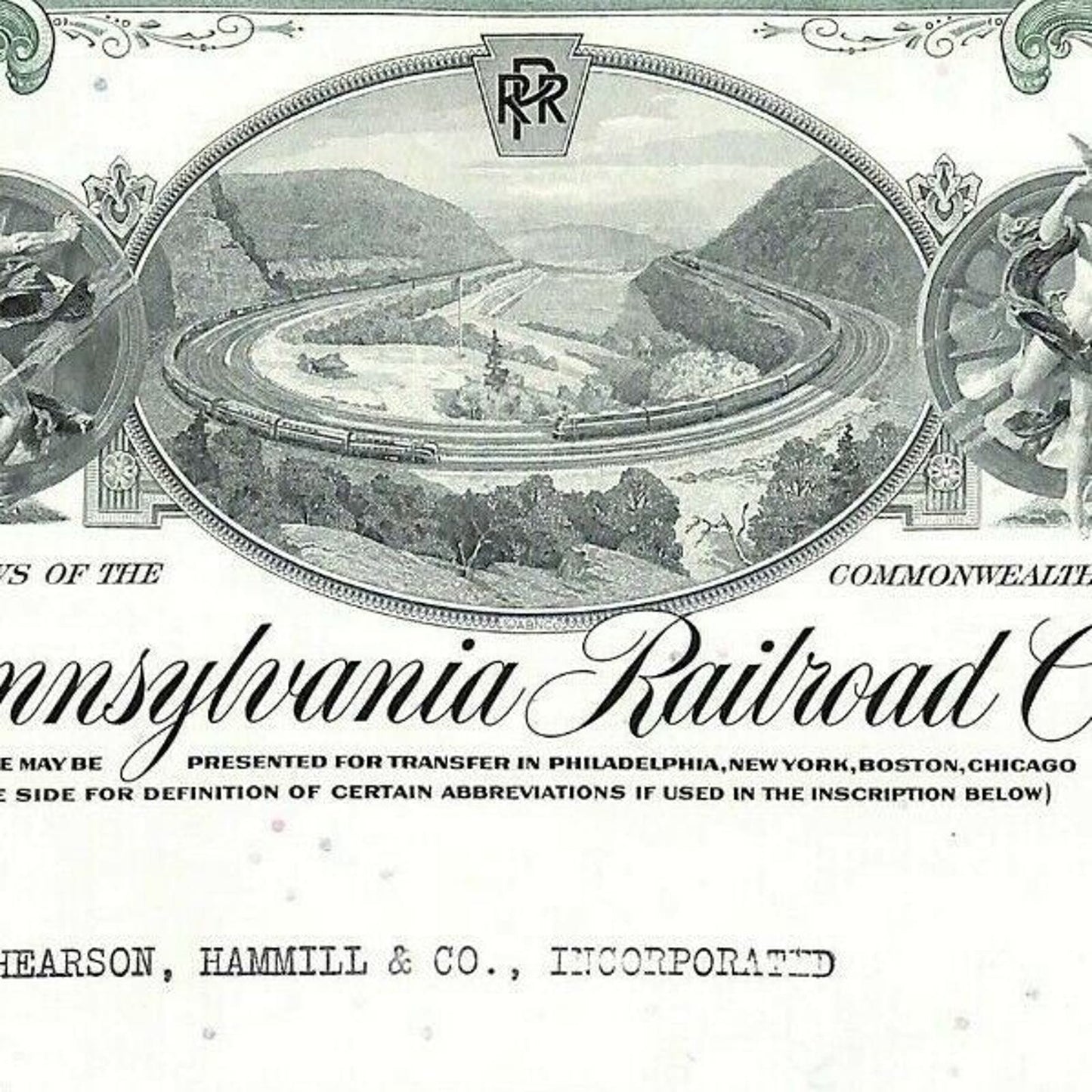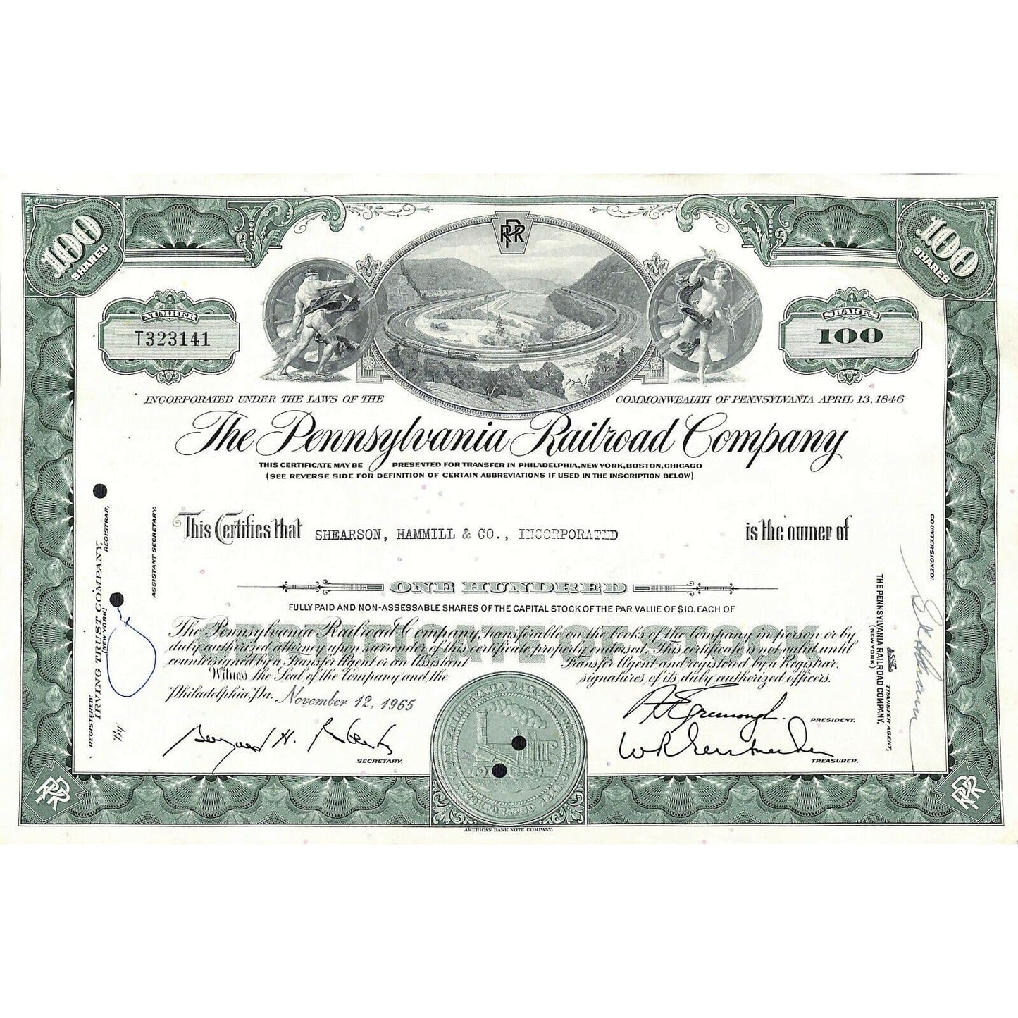 Vintage Stock Certificate 1965 Pennsylvania Railroad Iss. to: Shearson, Hammill