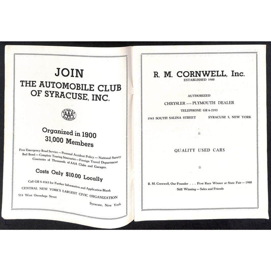 New York State Fair Auto Racing Program Stock Car 9/2 1957 16pp Scarce