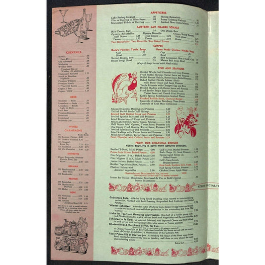 Kolb's Menu New Orleans Restaurant Large Scarce c1960-65 South Charles St.